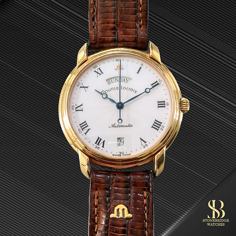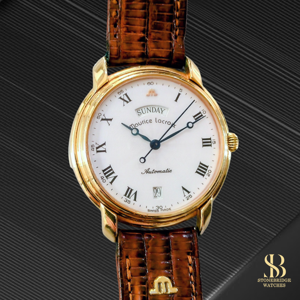 A beautifully classic example from Maurice Lacroixs much-admired Pontos collection, this elegant Day-Date model perfectly captures the refined aesthetic of late 1990s Swiss watchmaking.