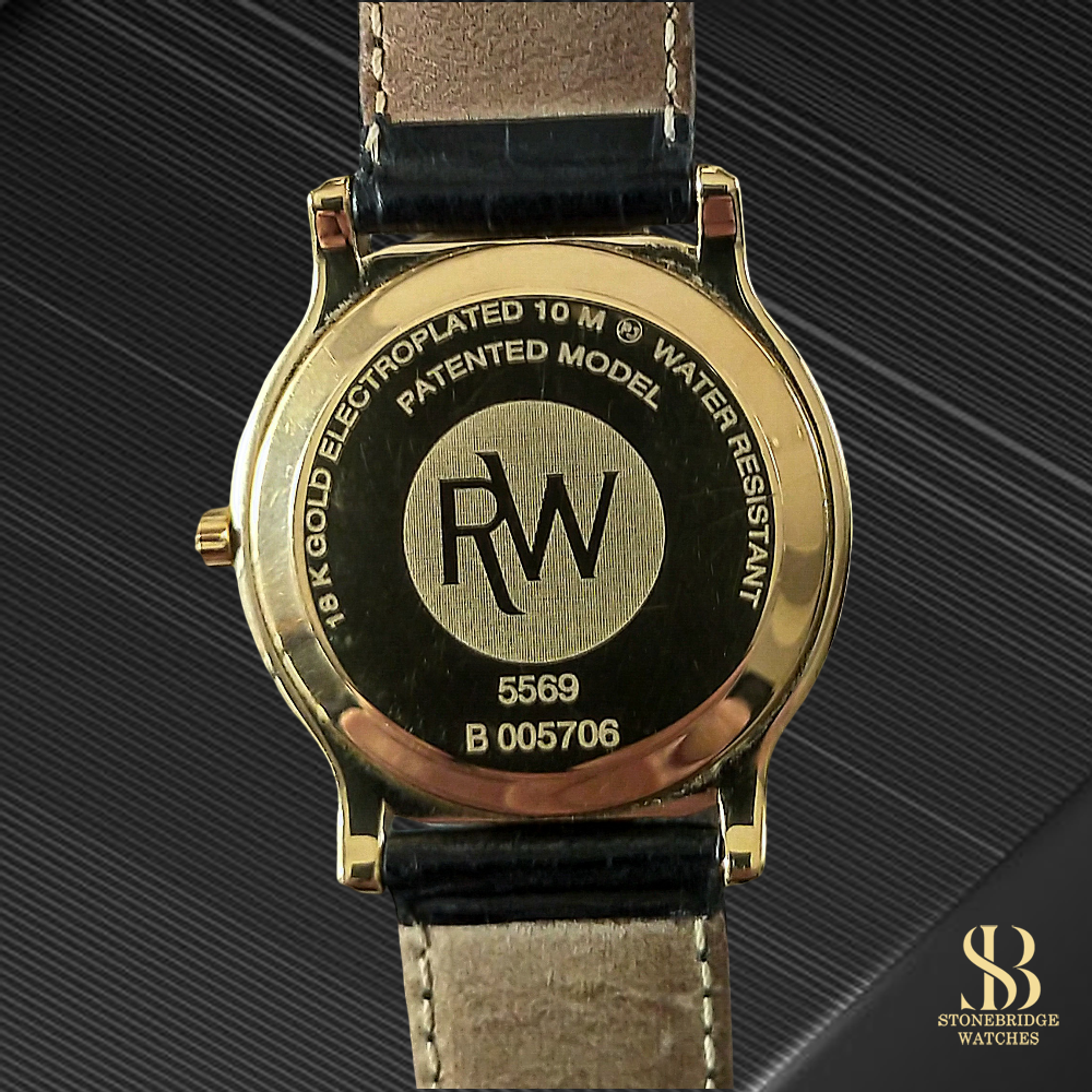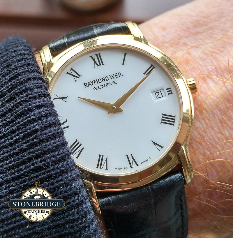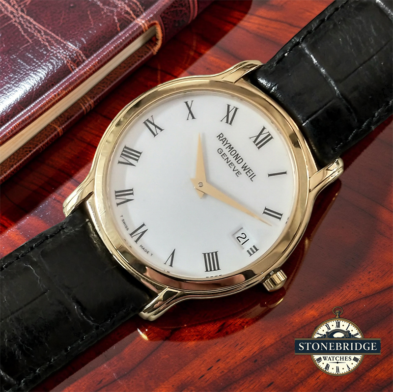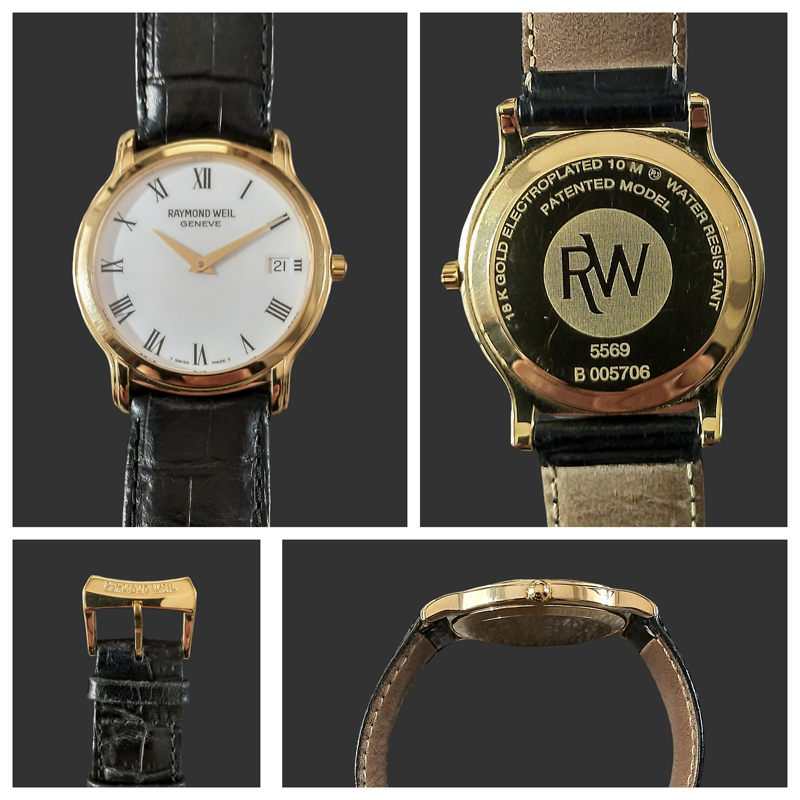Stonebridge Watches presents this Raymond Weil 5569, in beautiful conditionSIZE 35mm SPECIFICATIONSHistory : Pre-OwnedCondition : ExcellentBrand : Raymond WeilModel : 5569Year : Circa 2000Box : Raymond Weil Travel CaseCase Size : 35mmMovement : QuartzStrap : Raymond Weil strap with matching RW gold signed buckleEXTRA DETAILSSupplied with Raymond Weil branded travel caseComes with our 6 month Stonebridge watches guaranteeIf you require further information regarding the watch or are concerned about shipping and import fees outside of the UK, please contact us via e-mail or what's app.