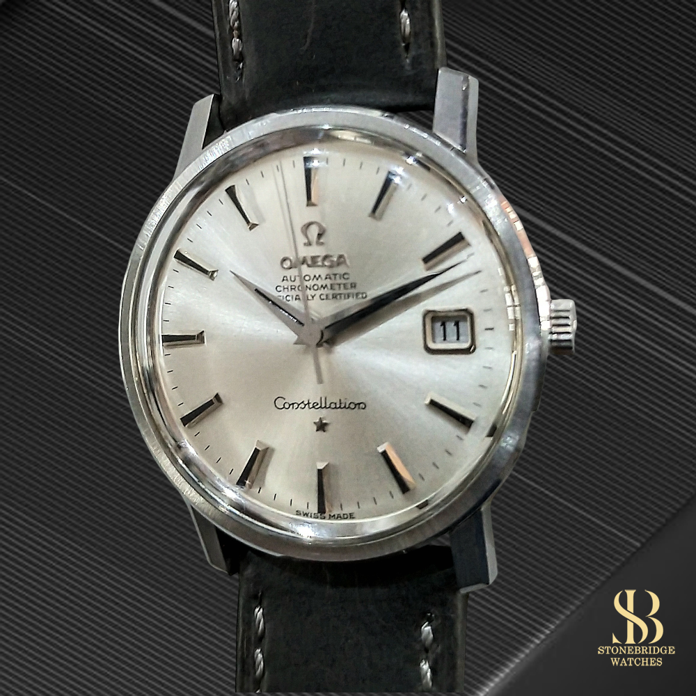 Discover a hallmark of mid-century Swiss watchmaking with this distinguished Omega Constellation Ref. 168.010, curated exclusively by Stonebridge Watches. Celebrated for its refined elegance and uncompromising precision, the 168.010 stands among the most iconic Constellation designs of the 1960s.