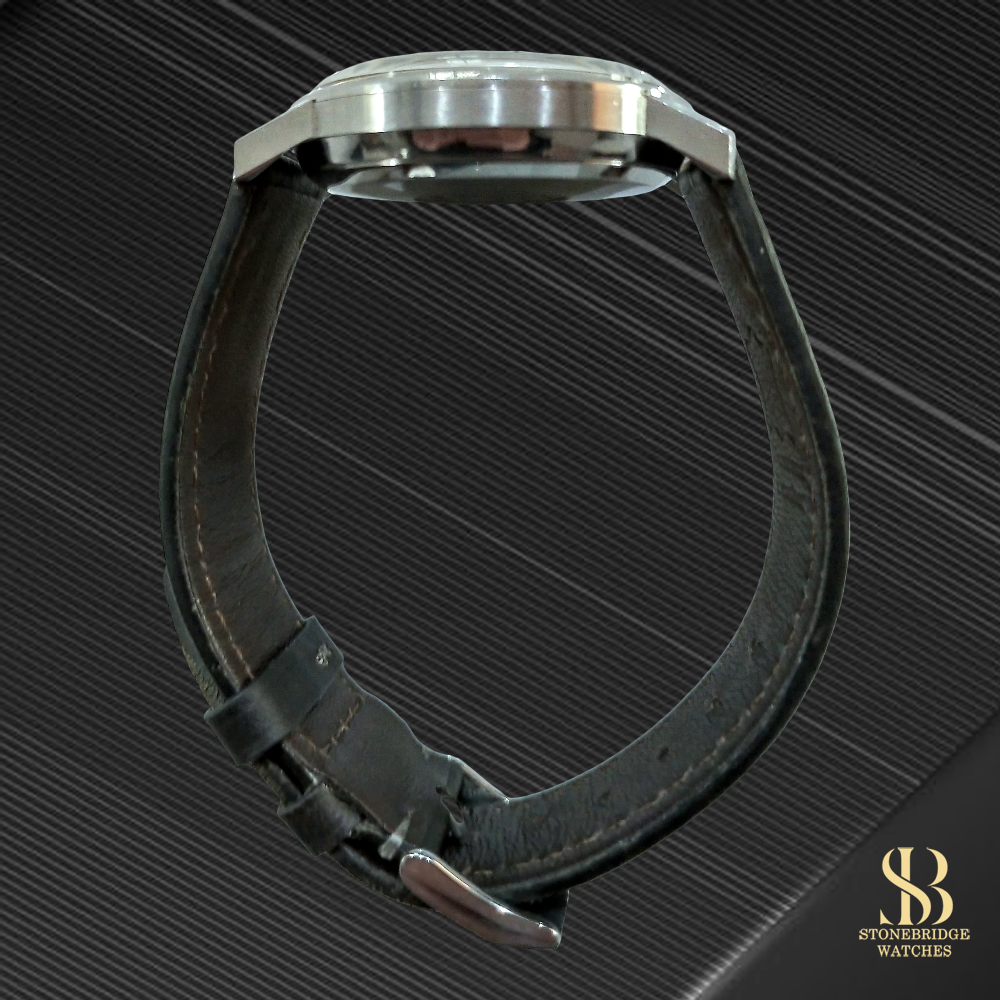 Measuring a versatile 35 mm, the watch wears elegantly with both casual and formal styling. Its understated profile, paired with a high-quality leather strap, makes it a timeless companion for everyday refinement.