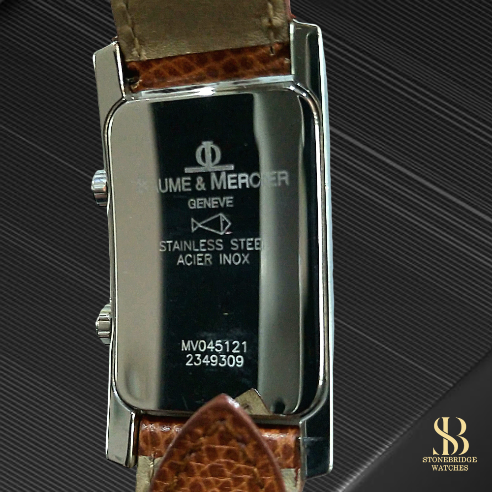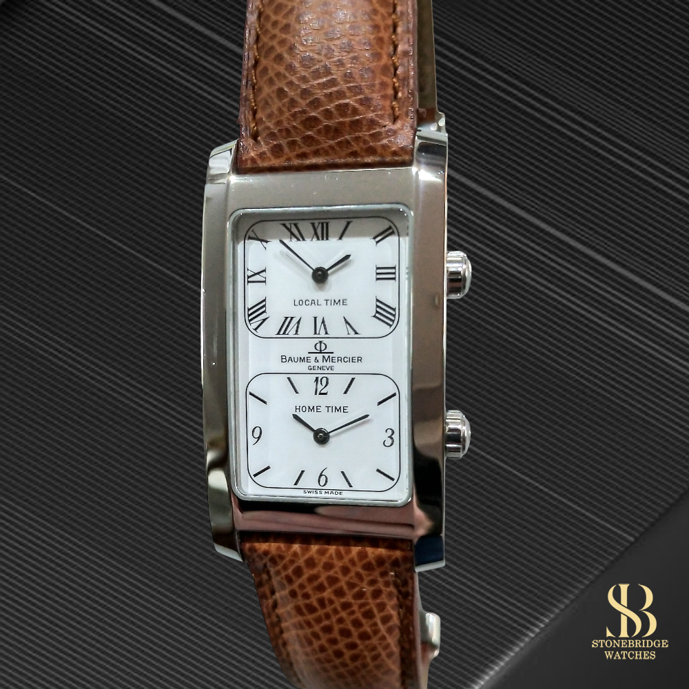 This Baume & Mercier Dual Time MV045121 is offered by Stonebridge Watches in excellent condition. A perfect addition for collectors seeking a distinctive travel watch with classic Swiss refinement.