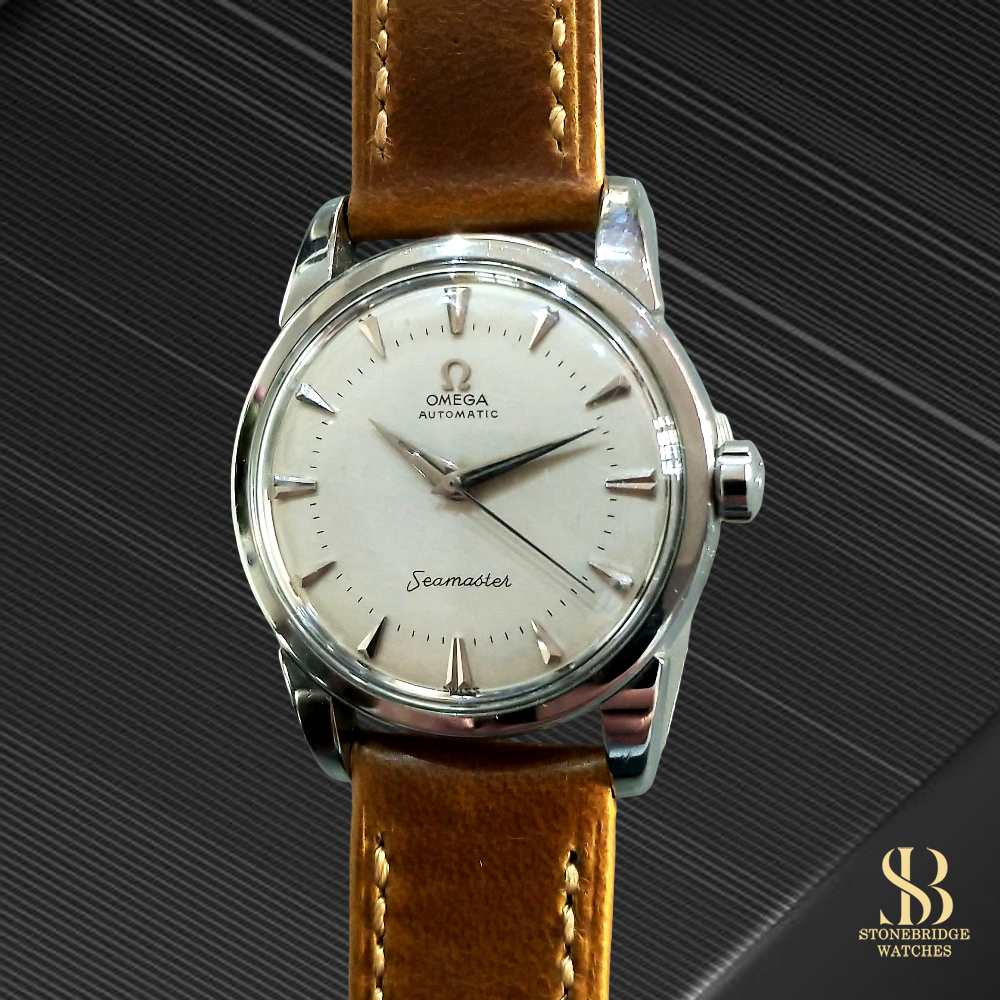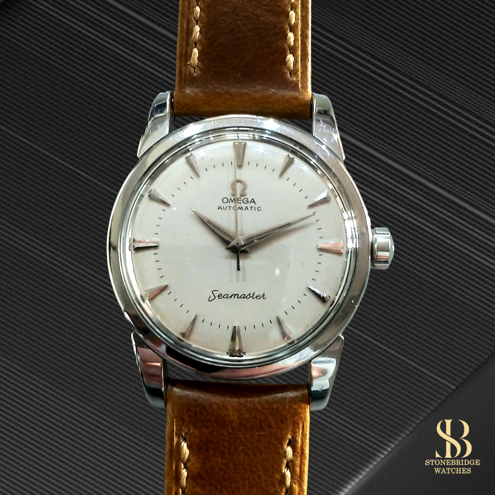 Stonebridge Watches are proud to offer this Vintage Omega Seamaster Ref : 2846In stunning conditionSIZE : 34mmSPECIFICATIONSHistory : Pre-OwnedCondition : Very Good / ExcellentBrand : OMEGAModel : Seamaster 2846Year : Circa : 1959Box : Omega Travel CasePapers : NoCase Size : 34mm (Excluding Crown)Movement : Omega caliber 501EXTRA DETAILSServiced July 2025 (with a daily accuracy under 30 seconds a day)Paired with a vintage style soft and supple black leather strap and Omega signed buckleIf you require further information regarding the watch or are concerned about shipping and import fees outside of the UK, please contact us via e-mail or what's app.STONEBRIDGE WATCHES SAYS...Omega Seamaster Ref. 2846 Circa 1959OverviewStonebridge Watches offers this timeless Seamaster Ref. 2846. First introduced in the mid-1950s, the 2846 sits at a pivotal point in Seamaster history, offering reliable automatic winding without the premium of chronometer-rated models, making it a favorite among collectors who appreciate authentic vintage aesthetic and mechanical integrity. This example features the classic clean, no-date dial with applied polished indexes and dauphine hands hallmarks of 1950s elegance. The modest 34 mm stainless steel case wears exceptionally well on modern wrists, balancing traditional proportions with everyday versatility. Key FeaturesMechanical Automatic Movement: Powered by Omegas robust automatic calibre from the influential 500/501 family, known for durability and accessible serviceability. Timeless Clean Design: Minimalist dial layout with applied markers makes this a versatile piece suited for both casual and formal wear.Original Character: The dials natural patina and preserved markers reflect authentic vintage charm rather than artificial refinishing a major plus for discerning collectors.Wearable Vintage Size: 34 mm diameter offers classic proportions and comfortable on-wrist feel.What Makes the 2846 DesirableThe Seamaster 2846 represents a sweet spot in vintage Omega collecting it combines collectible vintage patina with mechanical legitimacy, without straying into the high-price speculative tiers of other luxury vintage models.At Stonebridge Watches we are constantly searching for top quality vintage Omegas and this timepiece is no exception. The watch had a service completed July 2025 and therefore shows a daily accuracy of under 30 seconds a day. When you consider this watch is almost 70 years old this is quite exceptional. It has been paired with a new soft and supple vintage style leather strap (ready to wear, no ''wearing in'' required) and completed with a silver Omega buckle. When showcased on social media it garnered a lot of attention so we expect a lot of interest now it is available for to buy.