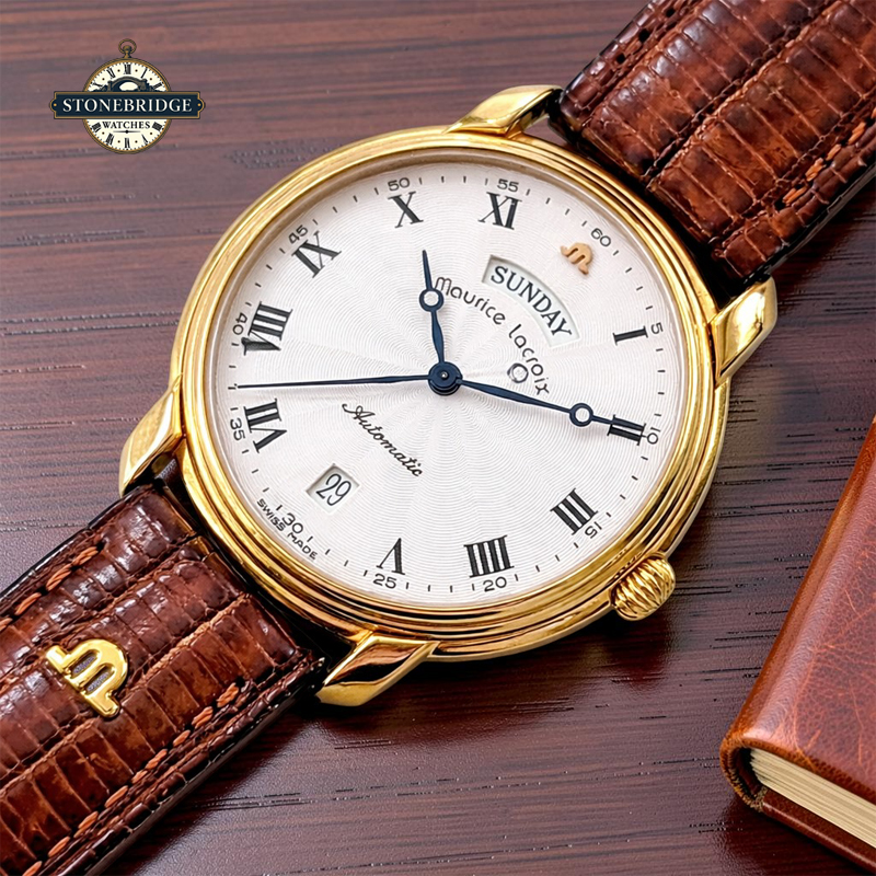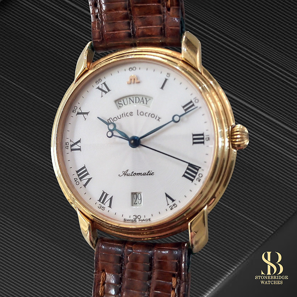 A beautifully classic example from Maurice Lacroixs much-admired Pontos collection, this elegant Day-Date model perfectly captures the refined aesthetic of late 1990s Swiss watchmaking.
