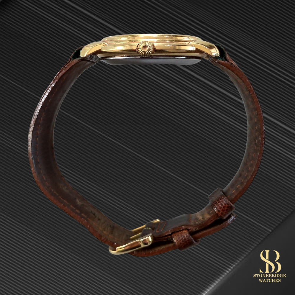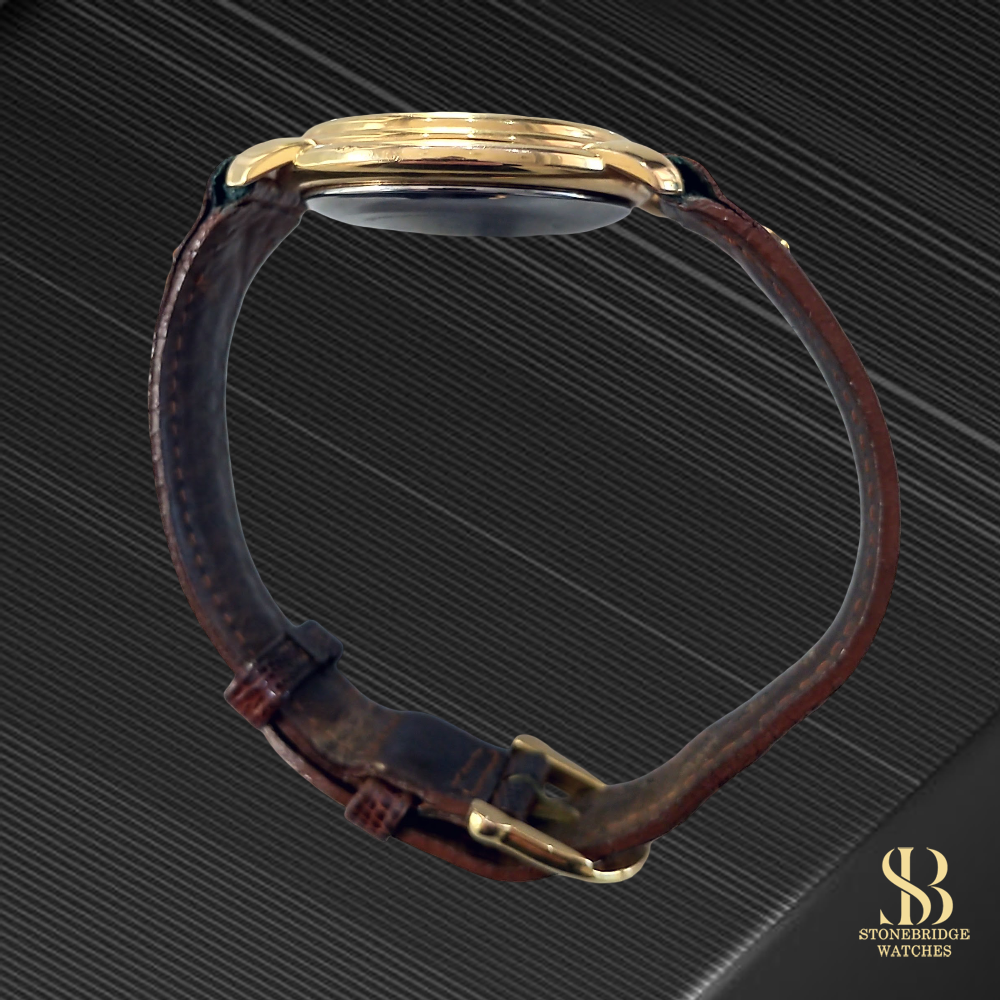 Housed in a gold-plated 36mm case, the watch sits comfortably on the wrist and pairs effortlessly with both formal and smart-casual attire. It is powered by a reliable Swiss automatic movement, delivering dependable daily performance.