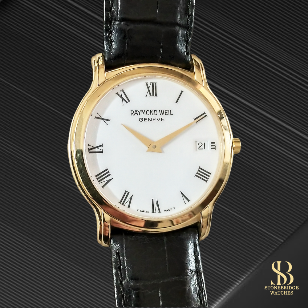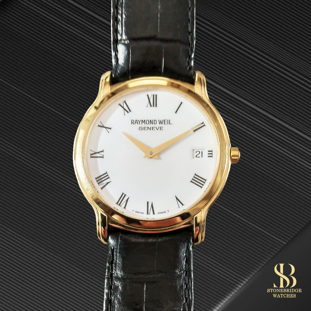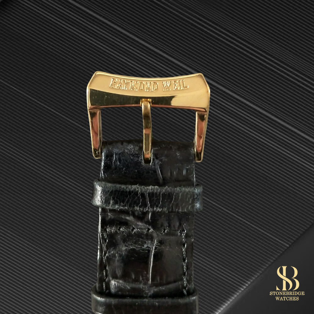 Stonebridge Watches presents this Raymond Weil 5569, in beautiful conditionSIZE 35mm SPECIFICATIONSHistory : Pre-OwnedCondition : ExcellentBrand : Raymond WeilModel : 5569Year : Circa 2000Box : Raymond Weil Travel CaseCase Size : 35mmMovement : QuartzStrap : Raymond Weil strap with matching RW gold signed buckleEXTRA DETAILSSupplied with Raymond Weil branded travel caseComes with our 6 month Stonebridge watches guaranteeIf you require further information regarding the watch or are concerned about shipping and import fees outside of the UK, please contact us via e-mail or what's app.