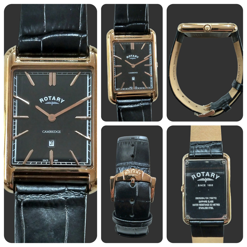 Stonebridge Watches presents this beautiful as new Rotary Rose Gold Plated Tonneau Cambridge GS05284/04 SIZE : 28.5mm x 42mmSPECIFICATIONSHistory : As newCondition : NewBrand : RotaryModel : Rotary Cambridge GS05284/04Year : Circa 2022Box : Rotary branded boxCase Size : 28.5mm x 42mmMovement : Miyota QuartzStrap : New Rotary branded strap with Rotary signed buckleEXTRA DETAILSSupplied With New Rotary Box.Comes with our 6 month Stonebridge watches guaranteeIf you require further information regarding the watch or are concerned about shipping and import fees outside of the UK, please contact us via e-mail or what's app.
