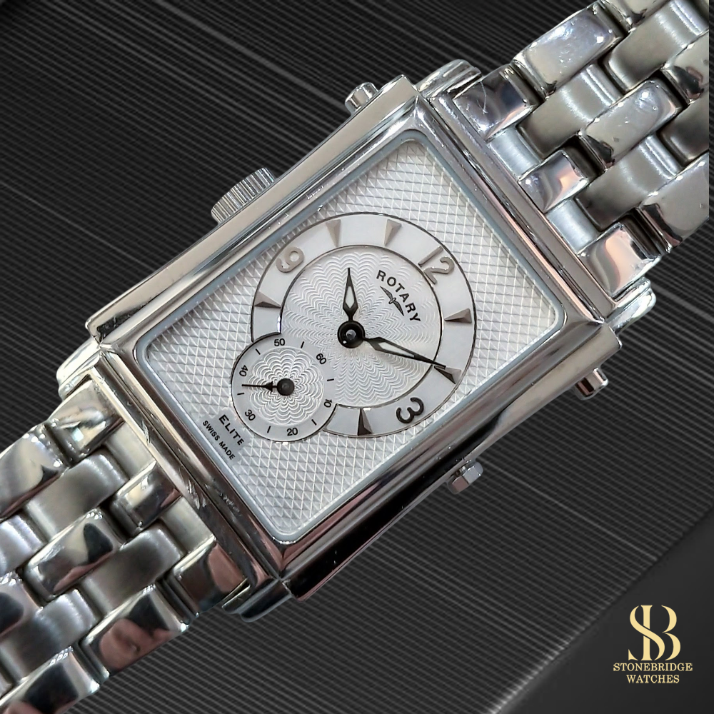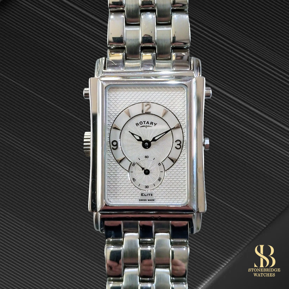 Rotary Elite Reverso Dual Dial Watch Stainless Steel Excellent Condition