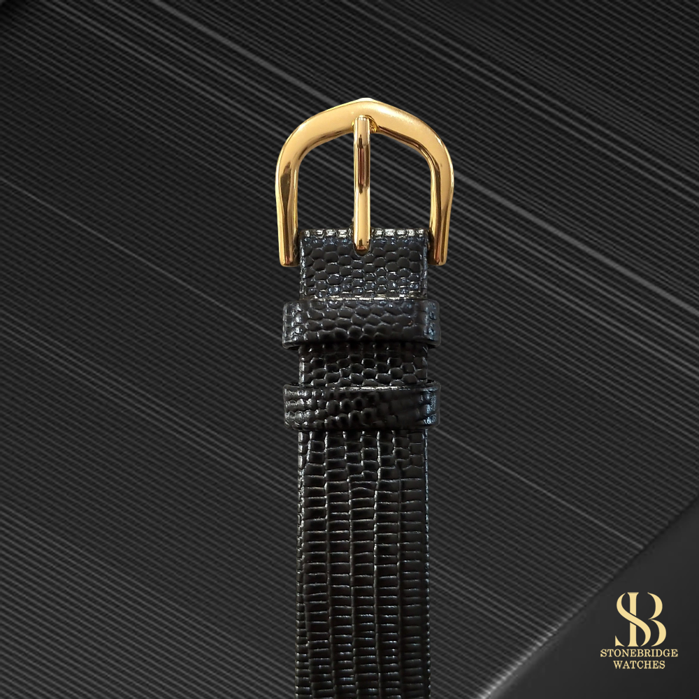 New lizard leather strap with gold buckle |