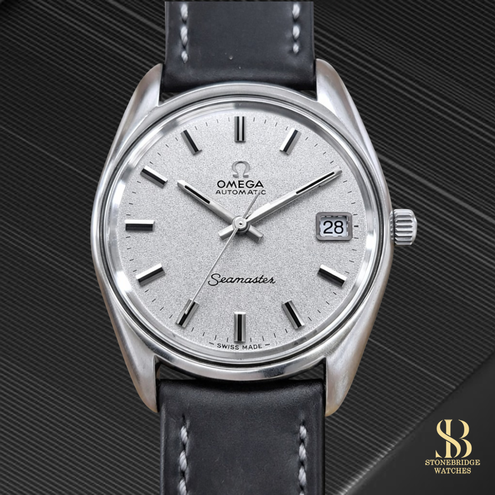 Here at Stonebridge Watches we are always looking to bring our clients the very best vintage watches. This Omega Seamaster is a very rare edition, especially when presented in this wonderful condition. Normally this watch is a 35mm, instead this is an ''oversized'' 36mm case. Plus what else can we say about the beautiful dial. Sometimes described as a ''sparkle'' dial others prefer the term sandblasted. Either way it is a conversation starter and this is certainly true when posted on our social media accounts. The feedback was very generous and garnered a lot of interest.