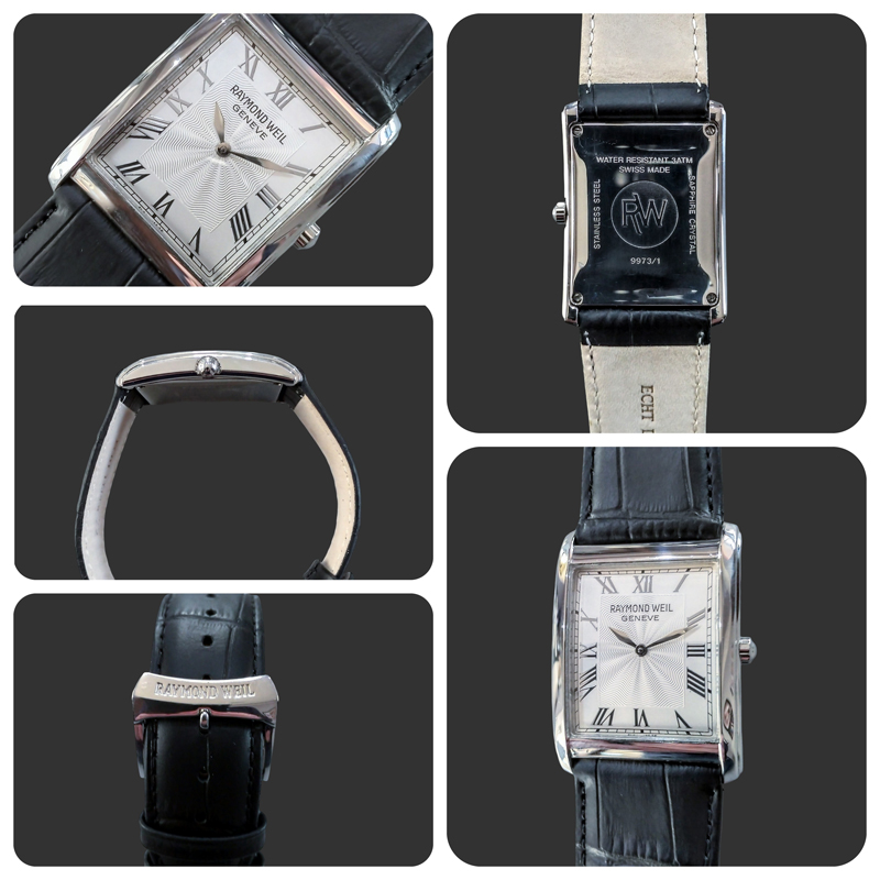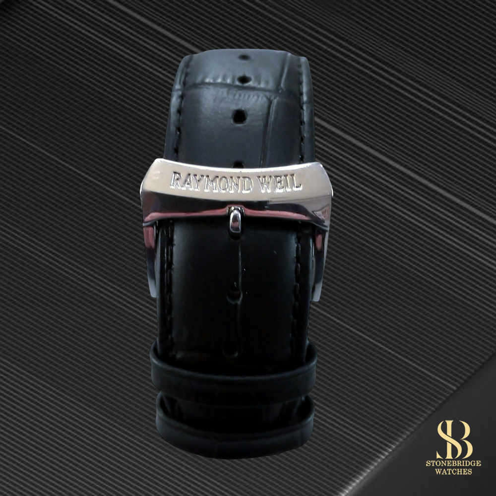 For comfort and longevity, the watch has been fitted with a brand new high-quality black Echt Leder leather strap, providing a fresh and luxurious feel. Importantly, it retains its original Raymond Weil signed buckle, preserving the authenticity and finishing touch collectors appreciate.