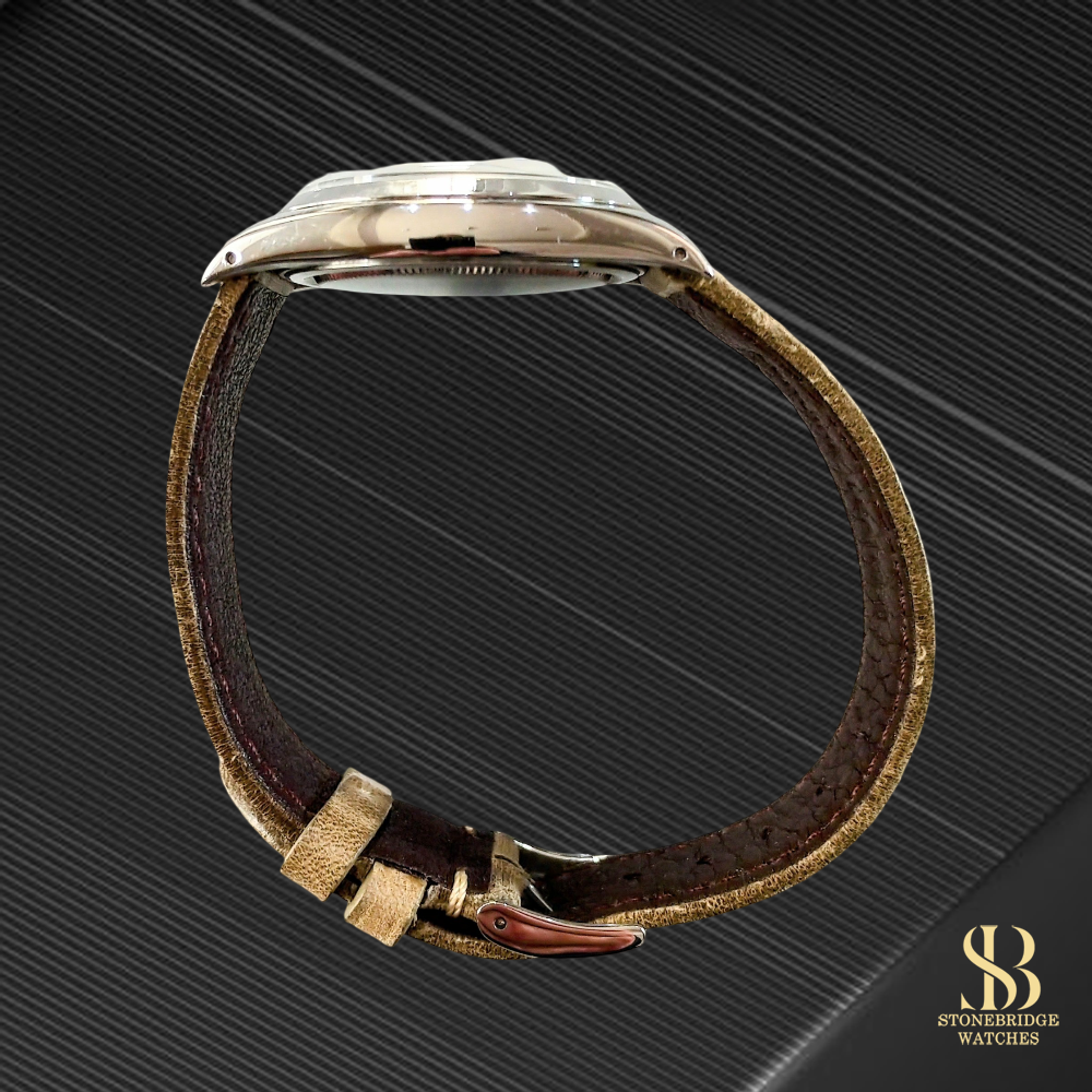 Here at Stonebridge Watches we have had the great pleasure of handling many vintage watches. We can honestly say this has the most beautifully aged patina dial we have seen. We have showcased this watch on social media and our followers agree in their hundreds. You maybe able to find other examples out there but we doubt many will match the vintage charm this watch offers. It's the very reason why we just had to buy and offer this to our astute watch collector's.