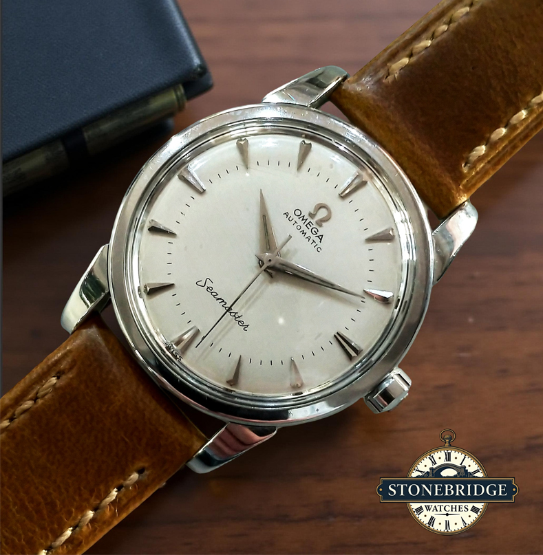 Stonebridge Watches are proud to offer this Vintage Omega Seamaster Ref : 2846In stunning conditionSIZE : 34mmSPECIFICATIONSHistory : Pre-OwnedCondition : Very Good / ExcellentBrand : OMEGAModel : Seamaster 2846Year : Circa : 1959Box : Omega Travel CasePapers : NoCase Size : 34mm (Excluding Crown)Movement : Omega caliber 501EXTRA DETAILSServiced July 2025 (with a daily accuracy under 30 seconds a day)Paired with a vintage style soft and supple black leather strap and Omega signed buckleIf you require further information regarding the watch or are concerned about shipping and import fees outside of the UK, please contact us via e-mail or what's app.STONEBRIDGE WATCHES SAYS...Omega Seamaster Ref. 2846 Circa 1959OverviewStonebridge Watches offers this timeless Seamaster Ref. 2846. First introduced in the mid-1950s, the 2846 sits at a pivotal point in Seamaster history, offering reliable automatic winding without the premium of chronometer-rated models, making it a favorite among collectors who appreciate authentic vintage aesthetic and mechanical integrity. This example features the classic clean, no-date dial with applied polished indexes and dauphine hands hallmarks of 1950s elegance. The modest 34 mm stainless steel case wears exceptionally well on modern wrists, balancing traditional proportions with everyday versatility. Key FeaturesMechanical Automatic Movement: Powered by Omegas robust automatic calibre from the influential 500/501 family, known for durability and accessible serviceability. Timeless Clean Design: Minimalist dial layout with applied markers makes this a versatile piece suited for both casual and formal wear.Original Character: The dials natural patina and preserved markers reflect authentic vintage charm rather than artificial refinishing a major plus for discerning collectors.Wearable Vintage Size: 34 mm diameter offers classic proportions and comfortable on-wrist feel.What Makes the 2846 DesirableThe Seamaster 2846 represents a sweet spot in vintage Omega collecting it combines collectible vintage patina with mechanical legitimacy, without straying into the high-price speculative tiers of other luxury vintage models.Here at Stonebridge Watches we are constantly searching for top quality vintage Omegas and this timepiece is no exception. The watch had a service completed July 2025 and therefore shows a daily accuracy of under 30 seconds a day. When you consider this watch is almost 70 years old this is quite exceptional. It has been paired with a new soft and supple vintage style leather strap (ready to wear, no ''wearing in'' required) and completed with a silver Omega buckle. When showcased on social media it garnered a lot of attention so we expect a lot of interest now it is available for to buy.