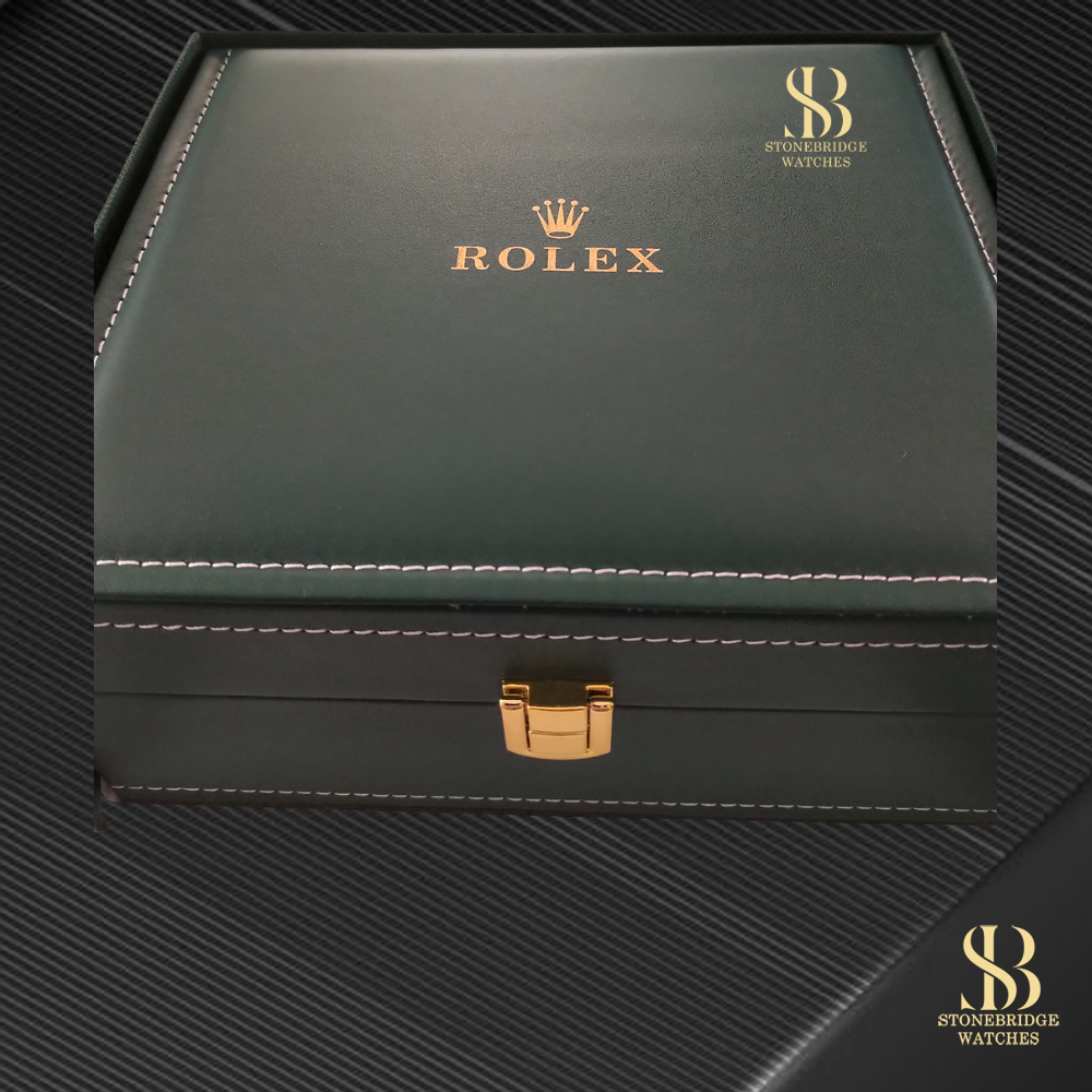 Also includes a high quality luxury aftermarket Rolex presentation box.